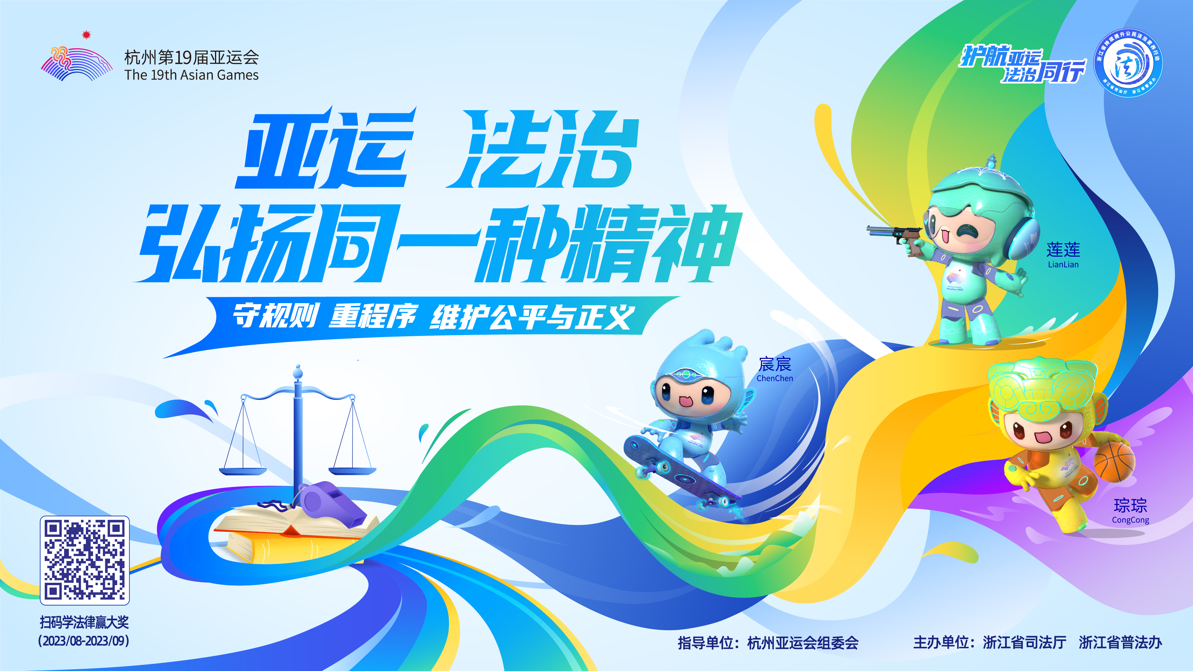 “護(hù)航亞運(yùn) 法治同行”主題海報(bào)重磅發(fā)布!亞運(yùn)法律知識(shí)有獎(jiǎng)答題開啟!