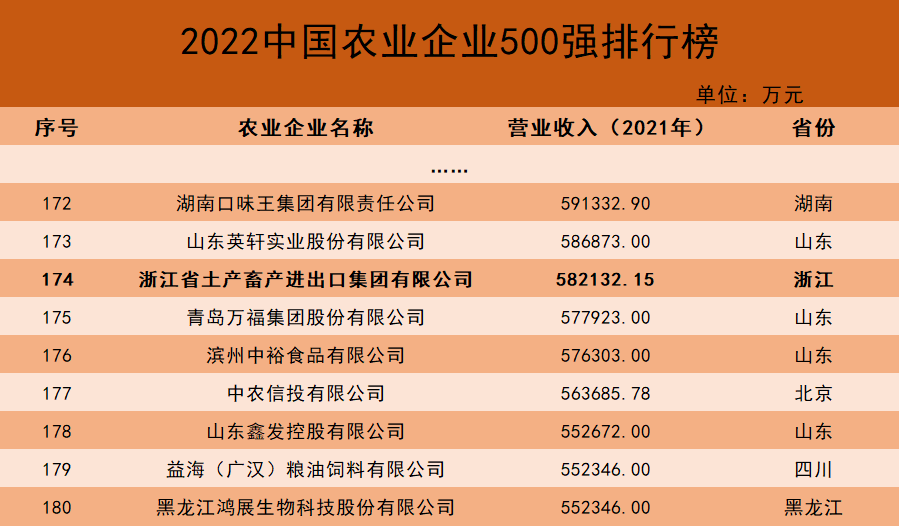 浙江土畜集團榮登“中國農(nóng)業(yè)企業(yè)500強”榜單