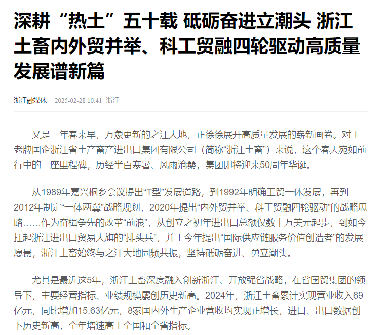 浙江土畜打造國際供應(yīng)鏈服務(wù)價(jià)值創(chuàng)造者