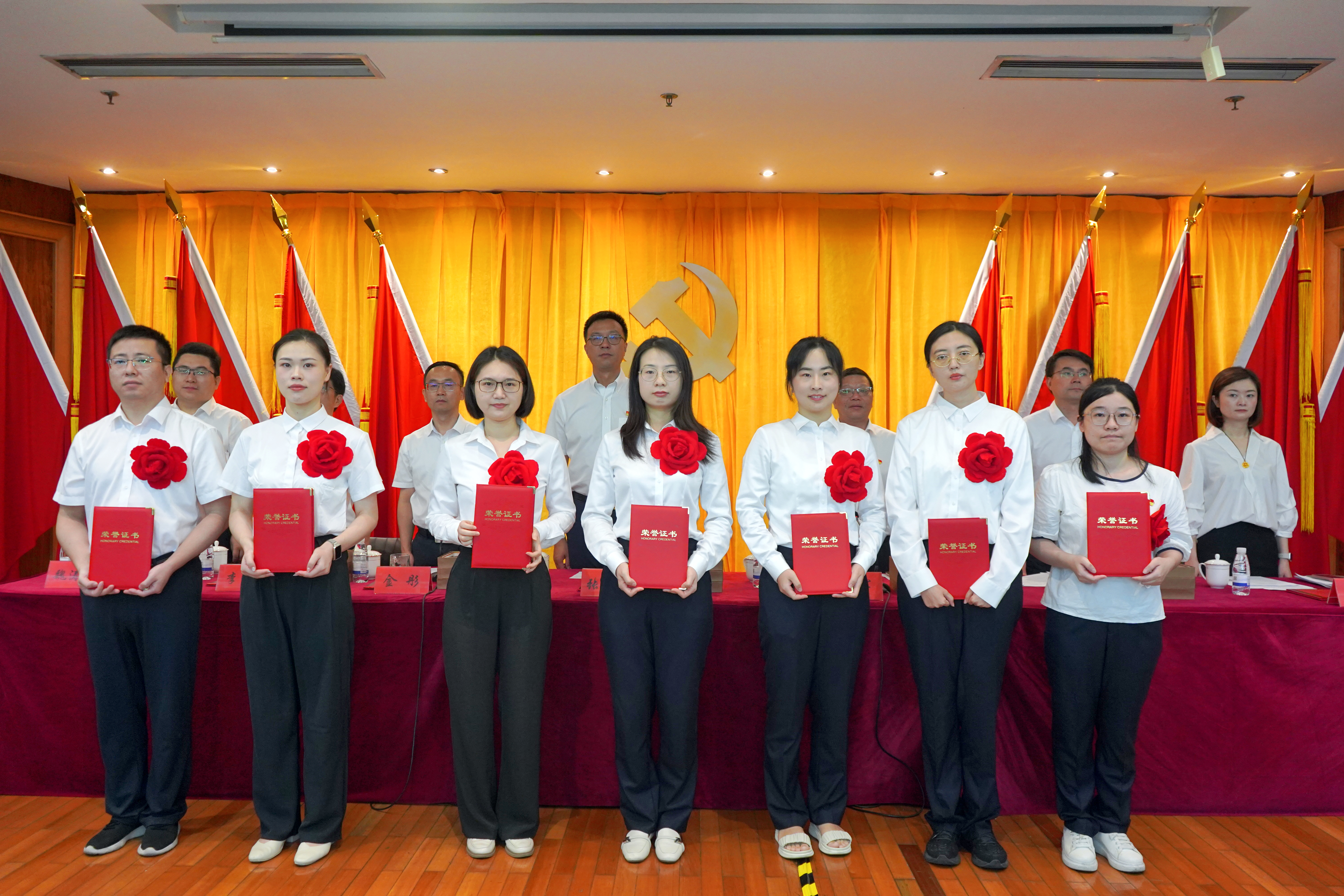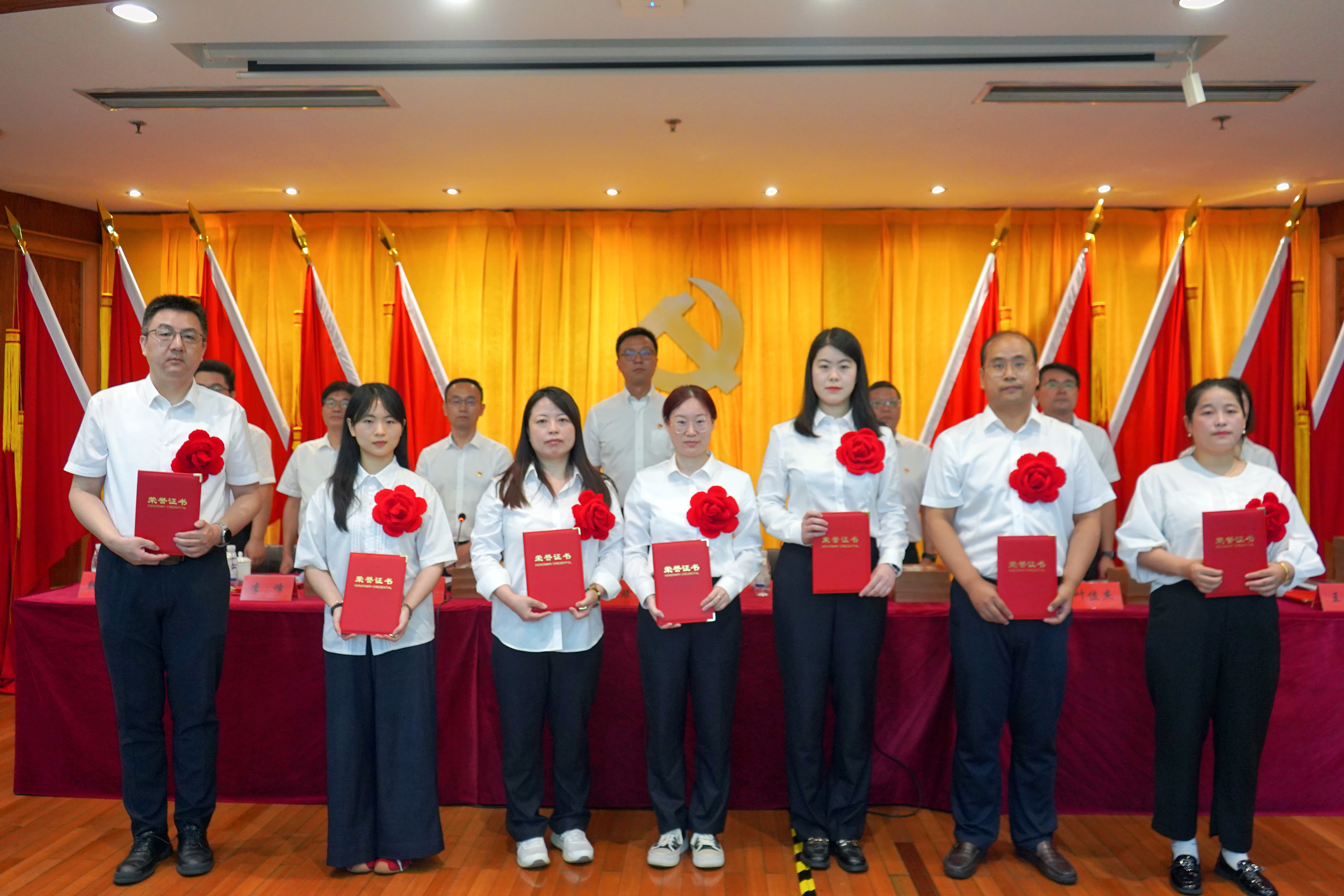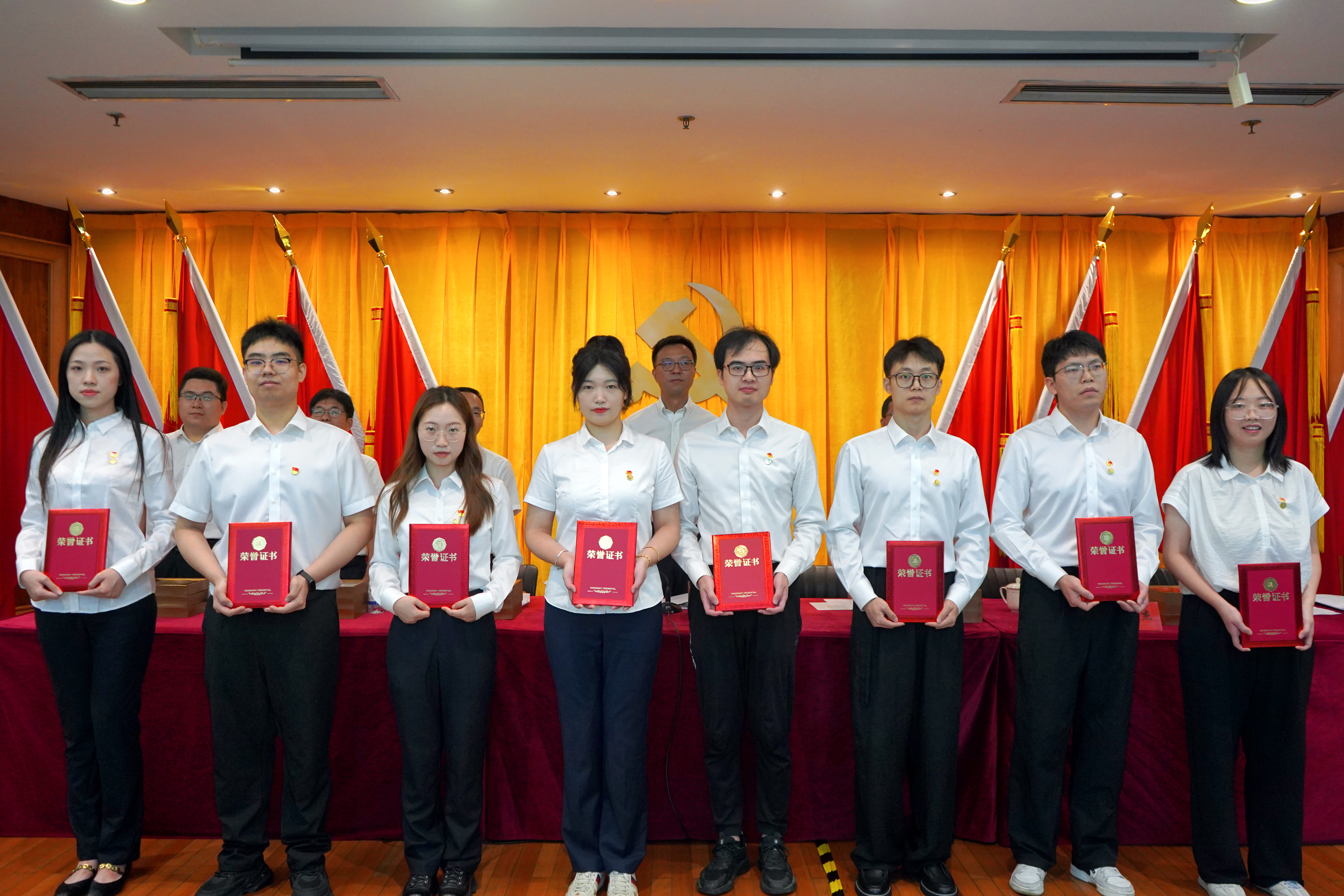 會(huì)上,公司黨委書(shū)記、董事長(zhǎng)張斌領(lǐng)誓,預(yù)備黨員莊嚴(yán)宣誓、全體黨員重溫入黨誓詞。公司黨委副書(shū)記、董事、總經(jīng)理林軍宣讀“兩優(yōu)一先”表彰決定,黨委班子成員為2024年度“兩優(yōu)一先”表彰對(duì)象、優(yōu)秀共青團(tuán)員和團(tuán)干部及司齡10年以上的員工代表頒發(fā)榮譽(yù)證書(shū)。