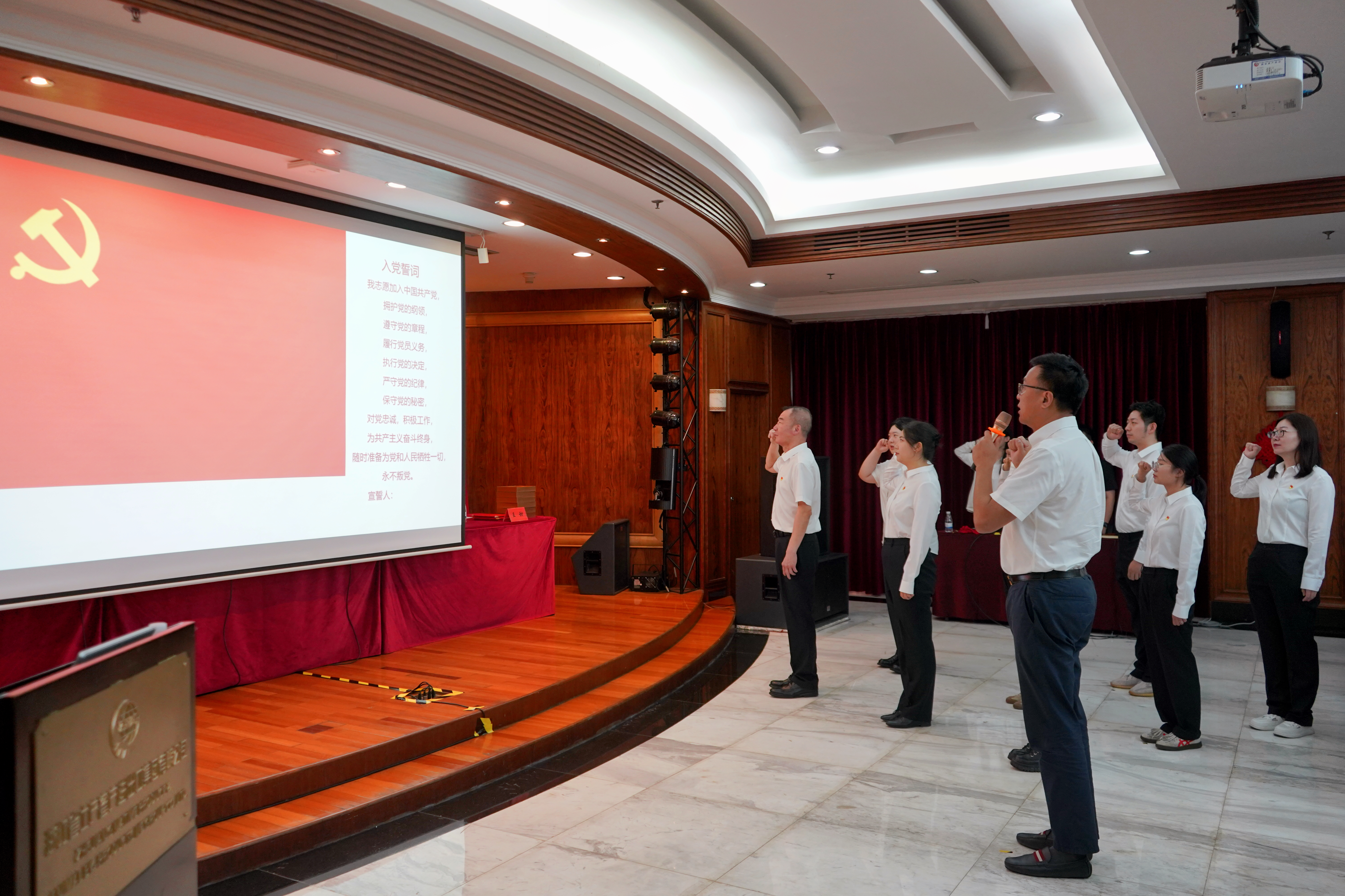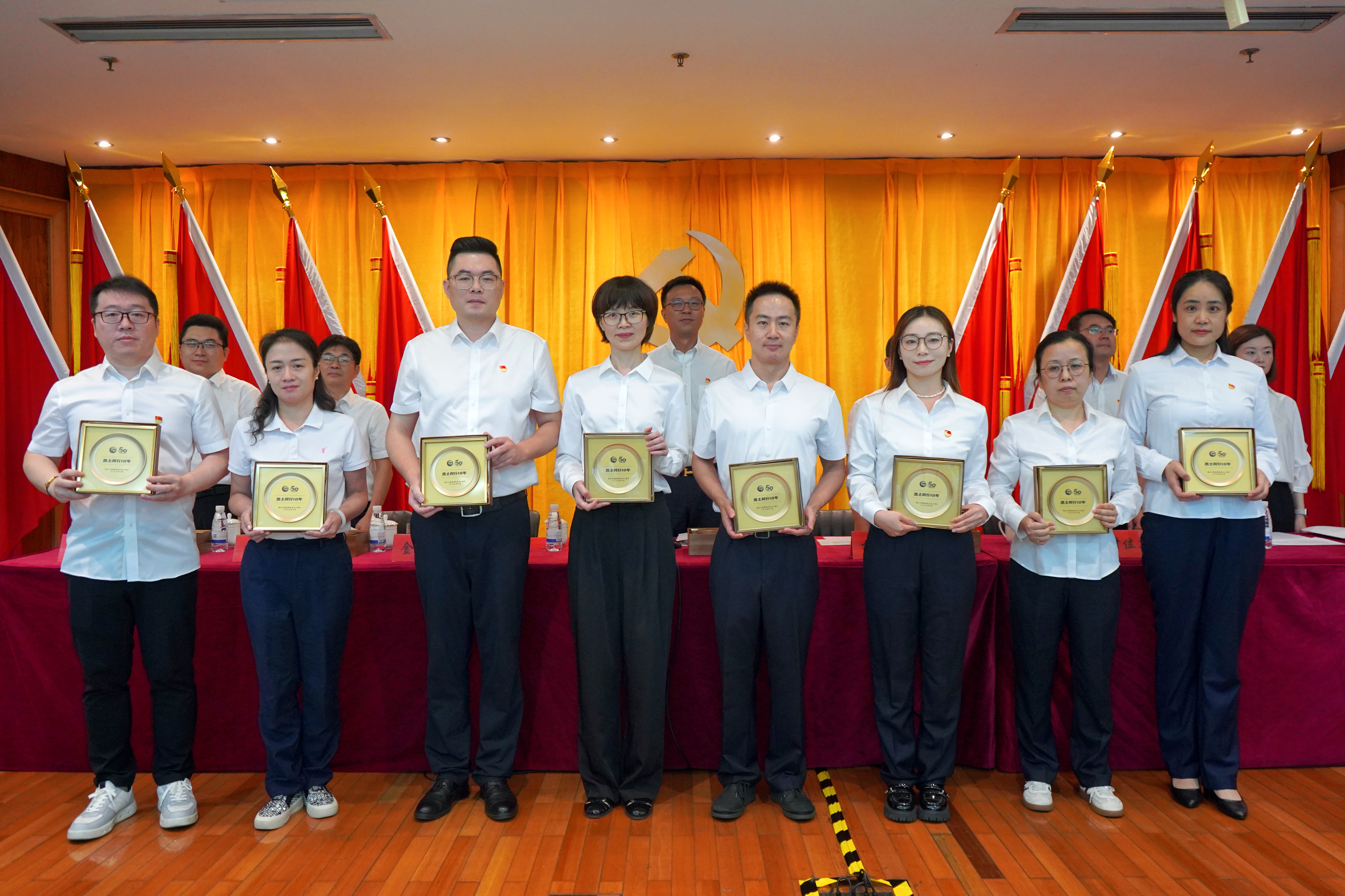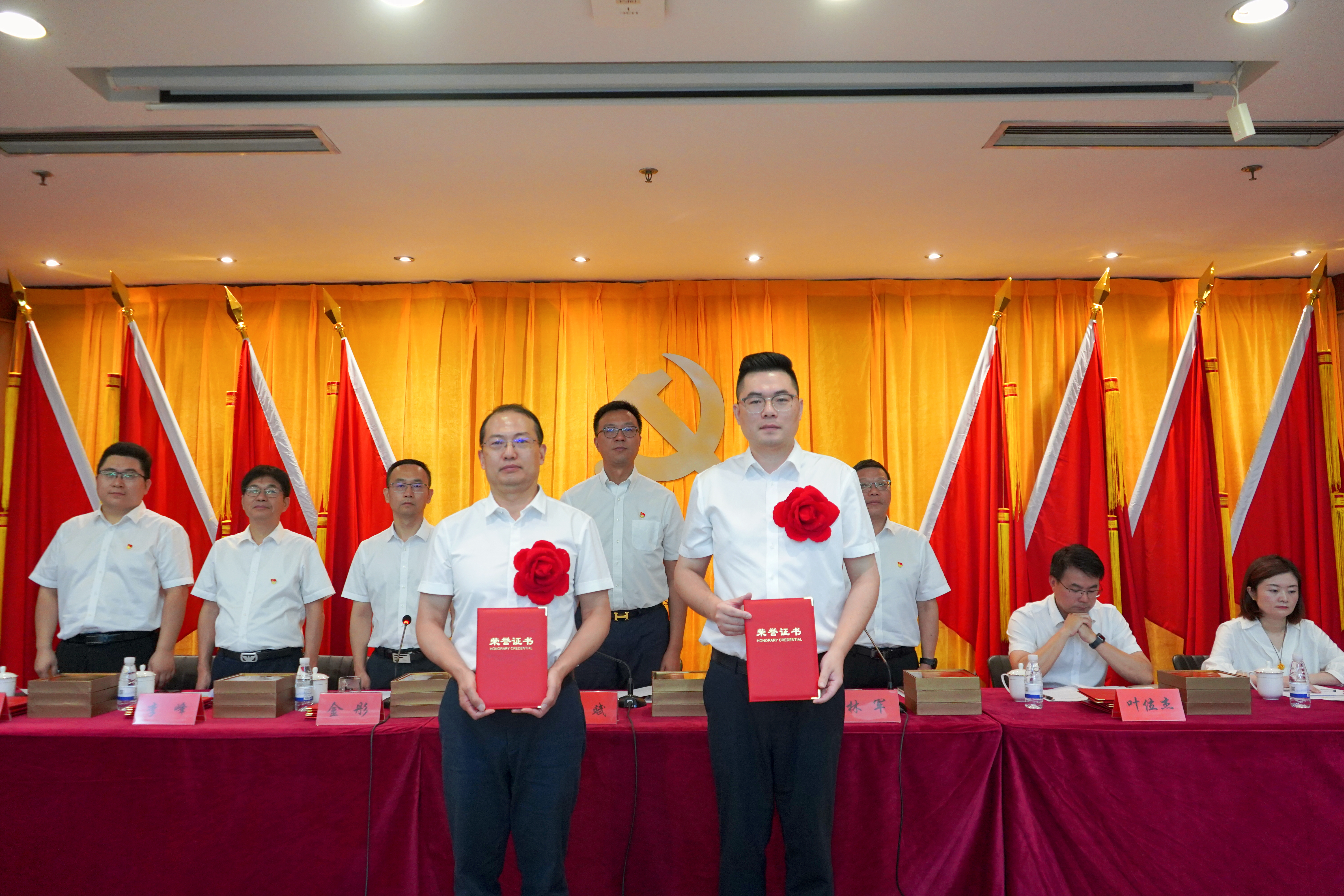 會(huì)上,公司黨委書(shū)記、董事長(zhǎng)張斌領(lǐng)誓,預(yù)備黨員莊嚴(yán)宣誓、全體黨員重溫入黨誓詞。公司黨委副書(shū)記、董事、總經(jīng)理林軍宣讀“兩優(yōu)一先”表彰決定,黨委班子成員為2024年度“兩優(yōu)一先”表彰對(duì)象、優(yōu)秀共青團(tuán)員和團(tuán)干部及司齡10年以上的員工代表頒發(fā)榮譽(yù)證書(shū)。