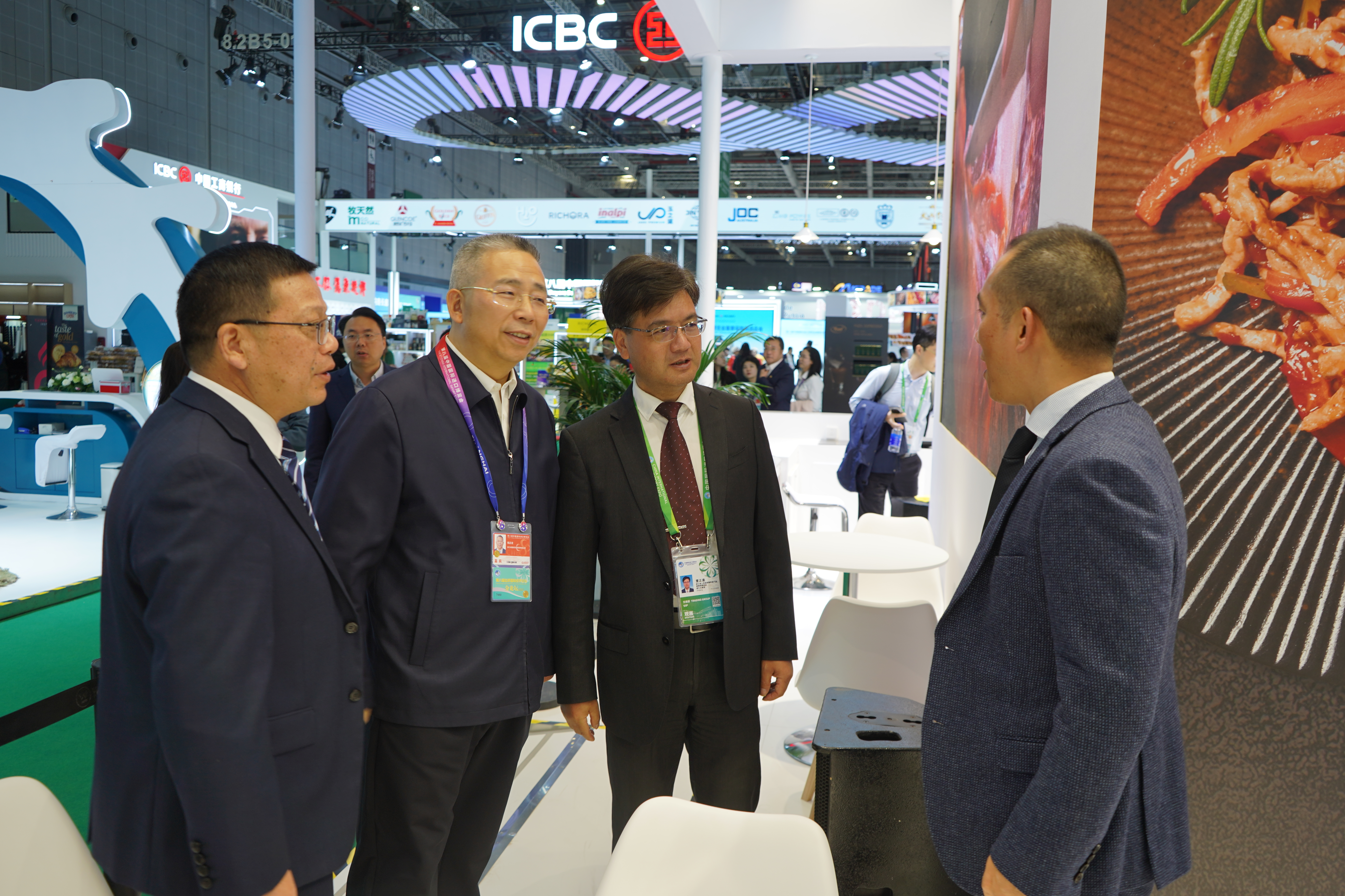 開展首日,浙江省國資委黨委委員、副主任董正泉在省國貿(mào)集團(tuán)總經(jīng)理、黨委副書記楊正宏,副總經(jīng)理、黨委委員張勇等陪同下,先后走訪了浙江土畜合作伙伴西班牙肉協(xié)、瑞士蓮展位,了解浙江土畜業(yè)務(wù)合作情況。