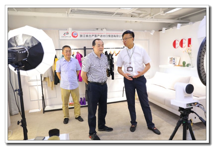 6月17日,盛躍星紀委書記、帥長斌主席現(xiàn)場觀看了公司形象展示直播,聽取了董事長張斌關(guān)于直播間布局、直播場次、產(chǎn)品云展銷流程等方面的介紹。駱敏華副總經(jīng)理在產(chǎn)品宣傳直播間觀看了家用用品、工具產(chǎn)品兩場直播,向業(yè)務(wù)主播詢問了漆刷等直播產(chǎn)品的有關(guān)情況。6月18日,鄭偉副書記現(xiàn)場觀看了公司EEI羊絨品牌服裝直播,對省土畜傳統(tǒng)外貿(mào)從線下走到線上的直播營銷模式進行了詳細了解。