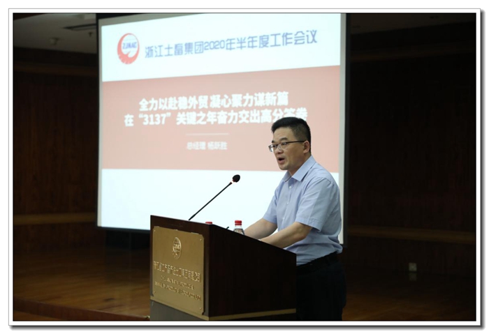 公司黨委副書記、總經(jīng)理楊躍勝在題為《全力以赴穩(wěn)外貿(mào) 凝心聚力謀新篇 在“3137”關(guān)鍵之年奮力交出高分答卷》的報告中指出,上半年,公司堅決貫徹集團決策部署,統(tǒng)籌推進疫情防控和復(fù)工達產(chǎn),穩(wěn)外貿(mào)、拓內(nèi)貿(mào)、抓風(fēng)控、強管理、強黨建,以“兩戰(zhàn)贏”為目標,踐行“爭先創(chuàng)優(yōu)”,有效應(yīng)對了全球疫情沖擊。他強調(diào),開展下半年工作,要以國貿(mào)集團半年度工作會議精神為指引,牢牢抓住集團領(lǐng)導(dǎo)提出的“八個更加注重、八個走在前列”、“全力交出‘經(jīng)濟、改革、發(fā)展、治理、安全、黨建’六張高分報表”總體要求,加快構(gòu)建國際國內(nèi)雙循環(huán),為集團奮進3137、為全省“重要窗口”建設(shè)作出更多貢獻。