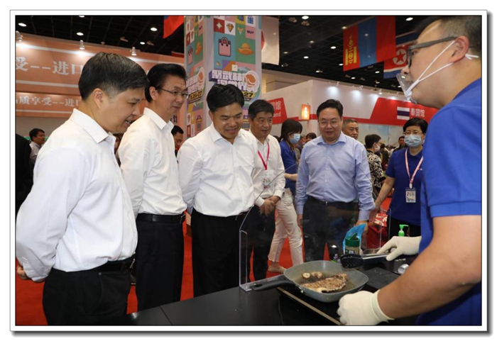 開(kāi)幕日上午,浙江省商務(wù)廳黨組書(shū)記、廳長(zhǎng)盛秋平,黨組副書(shū)記、副廳長(zhǎng)、一級(jí)巡視員韓杰,下城區(qū)委書(shū)記劉穎在省國(guó)貿(mào)集團(tuán)黨委委員、副總經(jīng)理黃道領(lǐng),公司黨委書(shū)記、董事長(zhǎng)張斌的陪同下,蒞臨公司展位,詳細(xì)了解公司銷售火爆的西班牙橄欖油、巴西牛肋排和捷克牛奶等產(chǎn)品。盛廳長(zhǎng)指出,浙江土畜要堅(jiān)決扛起國(guó)企擔(dān)當(dāng),發(fā)揮進(jìn)出口專業(yè)優(yōu)勢(shì)、渠道優(yōu)勢(shì)、貨源優(yōu)勢(shì),加強(qiáng)現(xiàn)場(chǎng)營(yíng)銷宣傳,抓住我國(guó)對(duì)澳洲紅酒反傾銷契機(jī),推動(dòng)公司澳洲紅酒銷售,加快培育民生類進(jìn)口產(chǎn)品國(guó)內(nèi)市場(chǎng),暢通國(guó)內(nèi)大循環(huán)。
