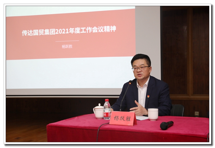 會(huì)上,公司總經(jīng)理?xiàng)钴S勝傳達(dá)了省國(guó)貿(mào)集團(tuán)2021年度工作會(huì)議精神。楊總強(qiáng)調(diào),一是要迅速把國(guó)貿(mào)集團(tuán)年度工作會(huì)議精神傳達(dá)到每一位員工,凝聚發(fā)展共識(shí),堅(jiān)決做到“集團(tuán)有號(hào)召、層層見(jiàn)行動(dòng)”;二是要進(jìn)一步校準(zhǔn)坐標(biāo)、完善規(guī)劃,提高工作的戰(zhàn)略性、前瞻性、科學(xué)性、協(xié)同性、能動(dòng)性;三是要積極展現(xiàn)“開(kāi)局即決戰(zhàn)、起步即沖刺”的戰(zhàn)斗姿態(tài),奮力奪取一季度“開(kāi)門(mén)紅”,為“十四五”開(kāi)好局奠定堅(jiān)實(shí)基礎(chǔ)。