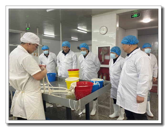座談會后,帥長斌一行參觀了凱興畜產(chǎn)加工車間,詳細(xì)了解腸衣生產(chǎn)工藝,并和一線工人親切交流。