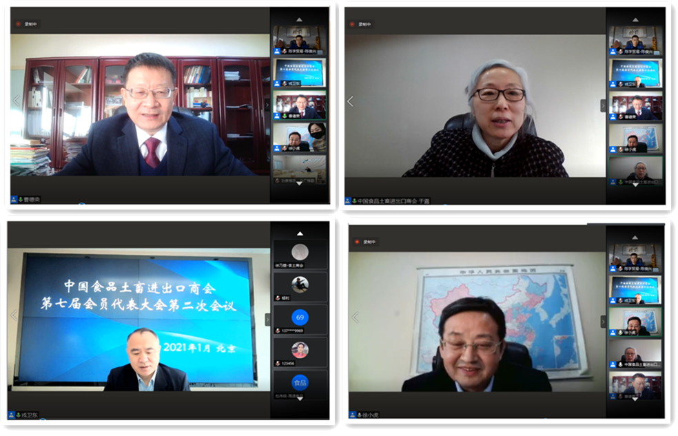根據(jù)中國食品土畜進出口商會章程規(guī)定和工作安排,考慮到當(dāng)前新冠疫情防控總體要求,2021年1月26日,食土商會以線上視頻會議方式召開了第七屆會員代表大會第二次會議。本次會議應(yīng)到會員代表265名,實到代表189名,超過應(yīng)到代表的三分之二,符合商會章程規(guī)定人數(shù)。