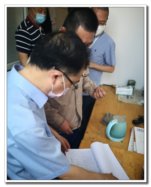檢查組查看配電室及安全生產(chǎn)制度上墻情況
