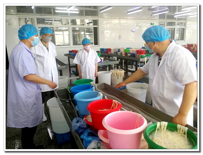 駱總率檢查組先后對(duì)廠區(qū)的污水處理中心、配電控制室、集體宿舍、食堂、加工車間等重點(diǎn)部位的設(shè)備設(shè)施運(yùn)行情況、日常巡查記錄、制度上墻等情況進(jìn)行了檢查和現(xiàn)場指導(dǎo)。凱興畜產(chǎn)常務(wù)副總經(jīng)理李俊向檢查組詳細(xì)匯報(bào)了企業(yè)防疫及復(fù)工復(fù)產(chǎn)情況、安全生產(chǎn)管理現(xiàn)狀及節(jié)能減排所取得的成效。