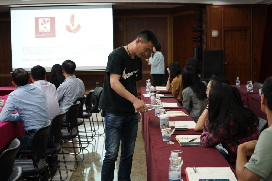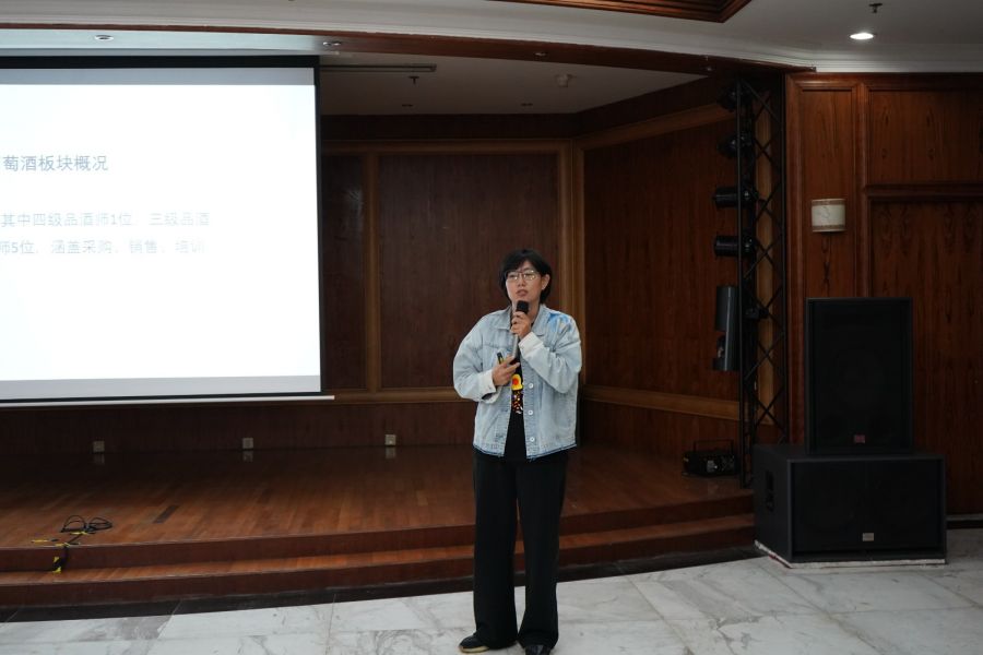 進(jìn)口一部品酒師任杰介紹了浙江土畜紅酒業(yè)務(wù)發(fā)展背景和現(xiàn)有紅酒代理品牌,重點(diǎn)介紹了目前公司代理的奔富和吉哈伯通兩個品牌商,在現(xiàn)場講述了紅酒釀造工藝、全球重點(diǎn)產(chǎn)區(qū)、葡萄酒的類別等知識,并普及了品鑒紅酒常識。