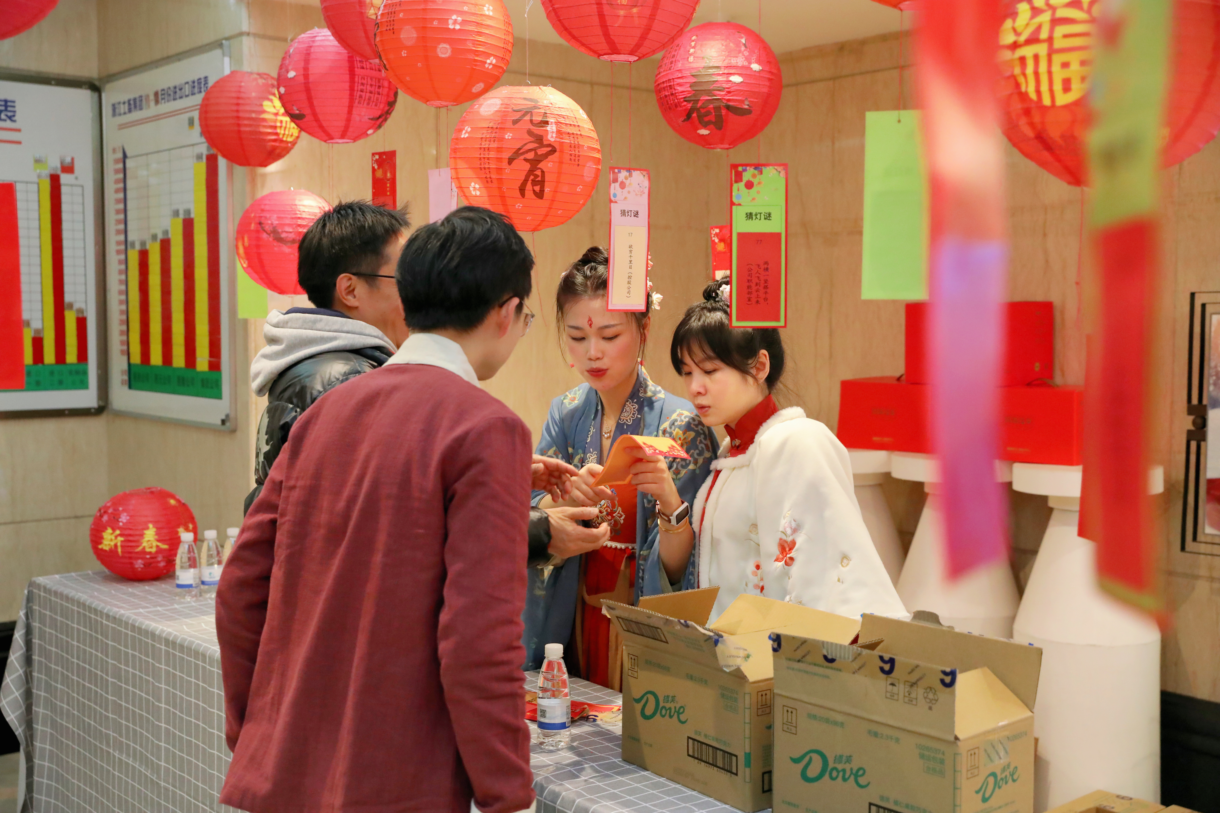 2月3日中午,浙江土畜工會組織開展元宵猜燈謎活動,公司三樓人頭攢動、熱鬧非凡,廳里錯落別致懸掛了一盞盞喜慶的紅燈籠,燈下都有五光十色的謎箋,吸引了許多員工駐足競猜,有的看著謎面低頭沉思,有的與同伴相互討論,領(lǐng)獎桌旁也是絡(luò)繹不絕。紅紅火火燈籠與熙熙攘攘的人群交相輝映,洋溢著濃濃的“土畜年味兒”。