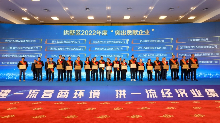 會(huì)上,浙江惠隆對(duì)外貿(mào)易有限責(zé)任公司、浙江惠元對(duì)外貿(mào)易有限責(zé)任公司被授予拱墅區(qū)2022年度“突出貢獻(xiàn)企業(yè)”稱號(hào)。本次大會(huì)還發(fā)布了《拱墅區(qū)“雙百”企業(yè)禮遇十條》,聘任招商大使,部署了打造“時(shí)尚之都、數(shù)字新城、運(yùn)河明珠”的戰(zhàn)略要求。