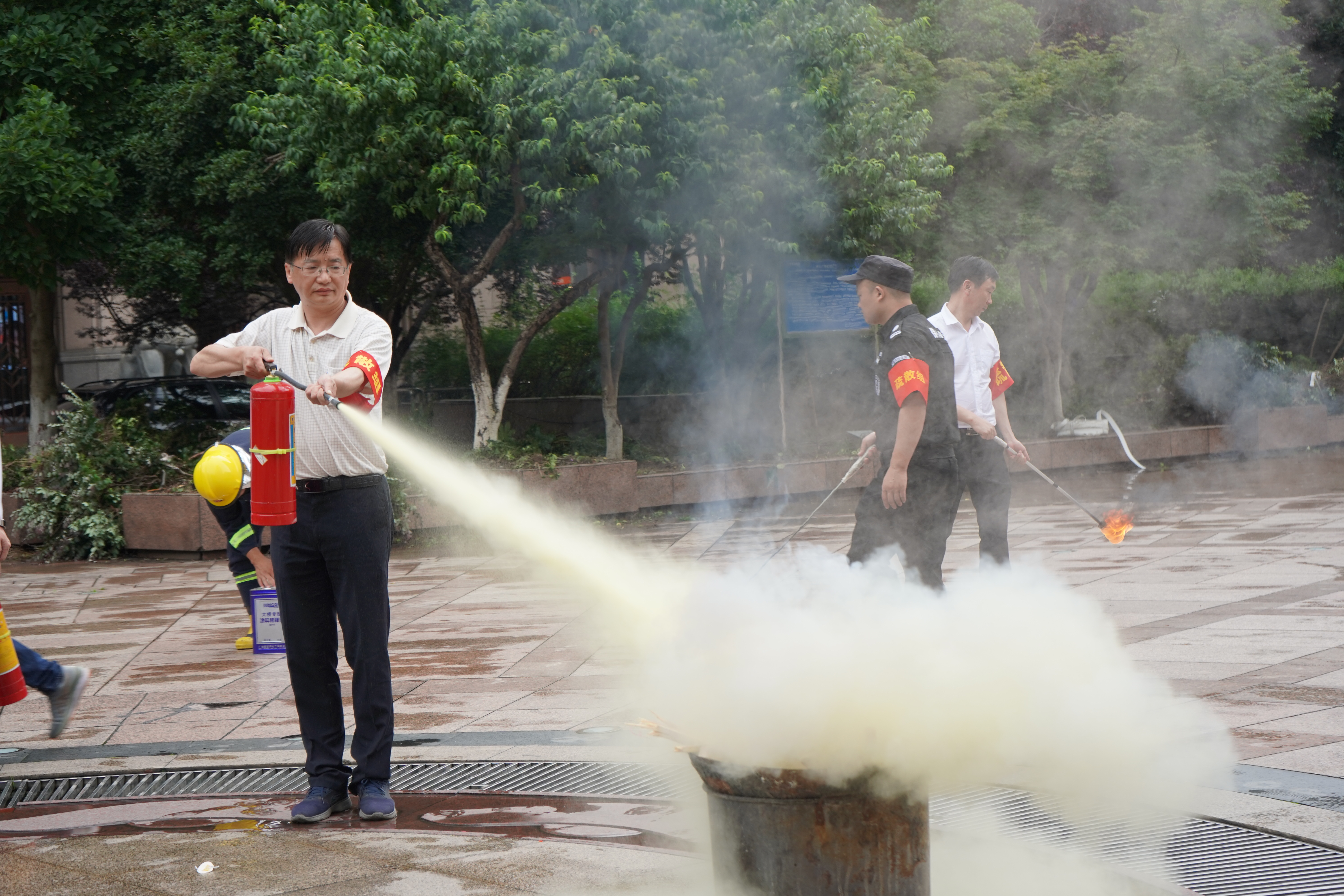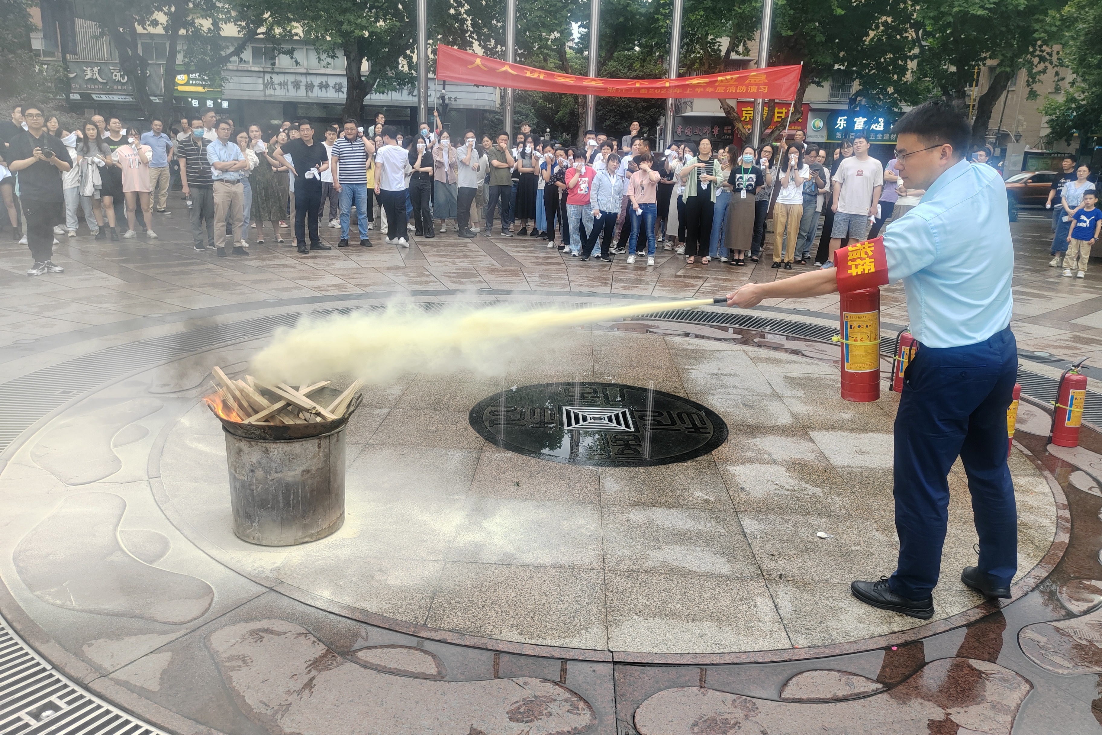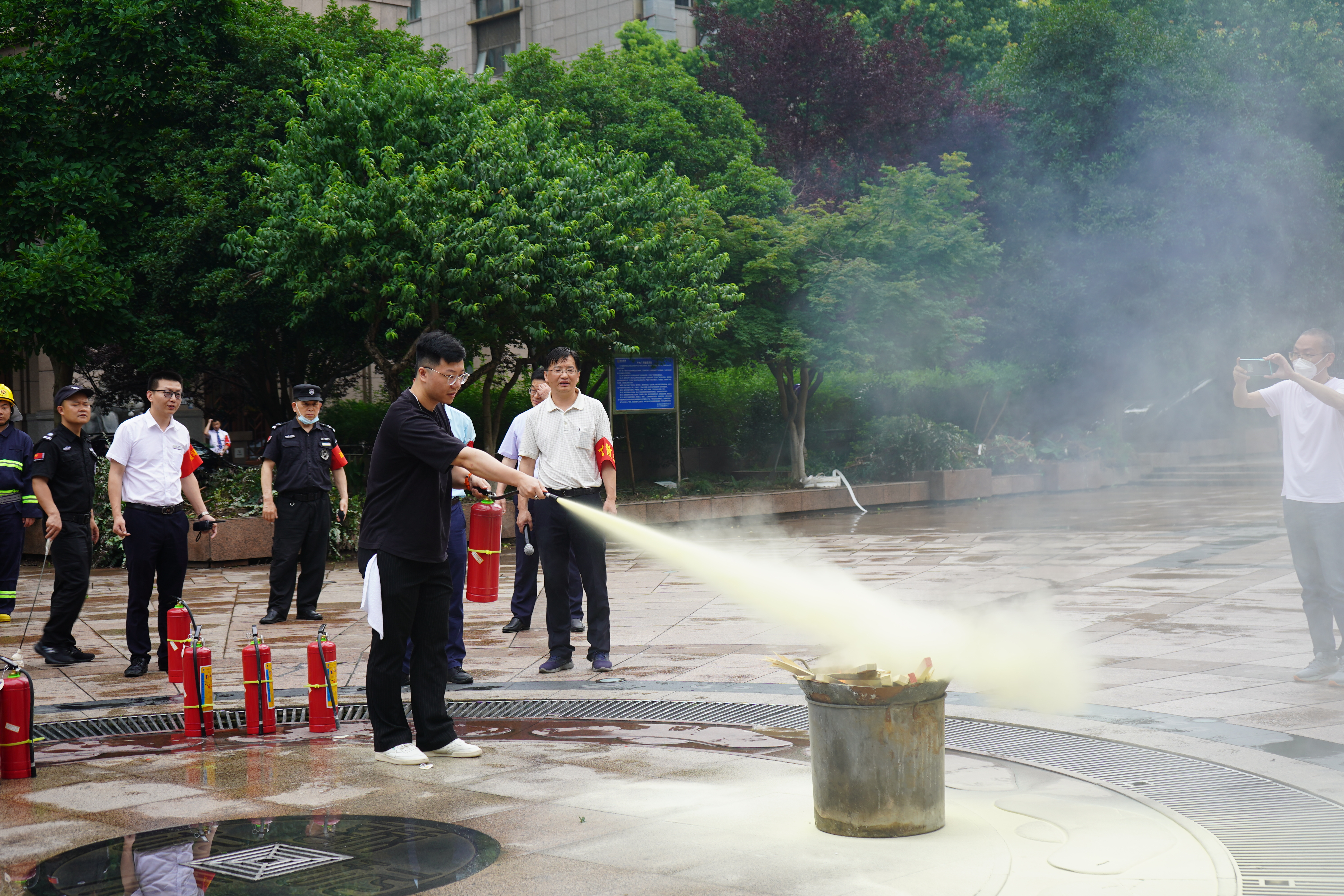 疏散逃生后,大樓專職安全管理員介紹消防器材的使用方法和注意事項,員工踴躍參與,輪流使用滅火器進行滅火演習,切實提升員工撲救初期火災能力。